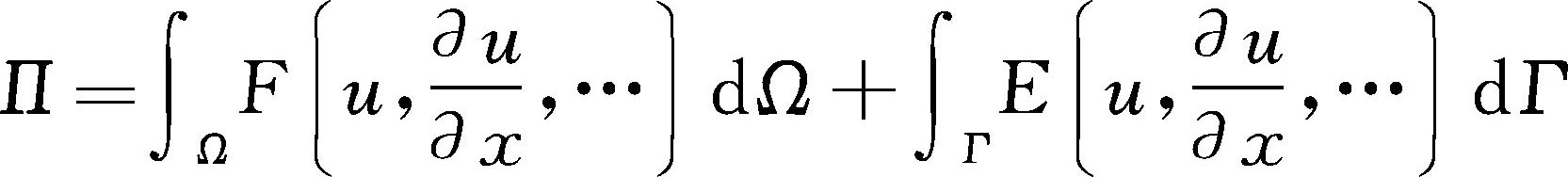 此时,如果连续介质问题有解 u ,则解 u 必定使泛函 Π 对于微小变化δ u 取驻值(极值),即泛函的“一阶变分”等于零。