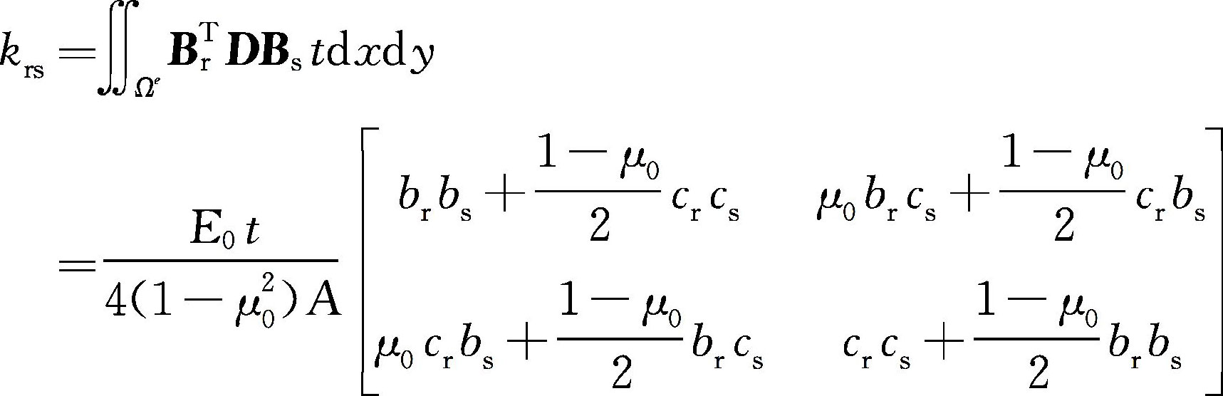 式中 B ——单元应变矩阵,其分块子矩阵为: