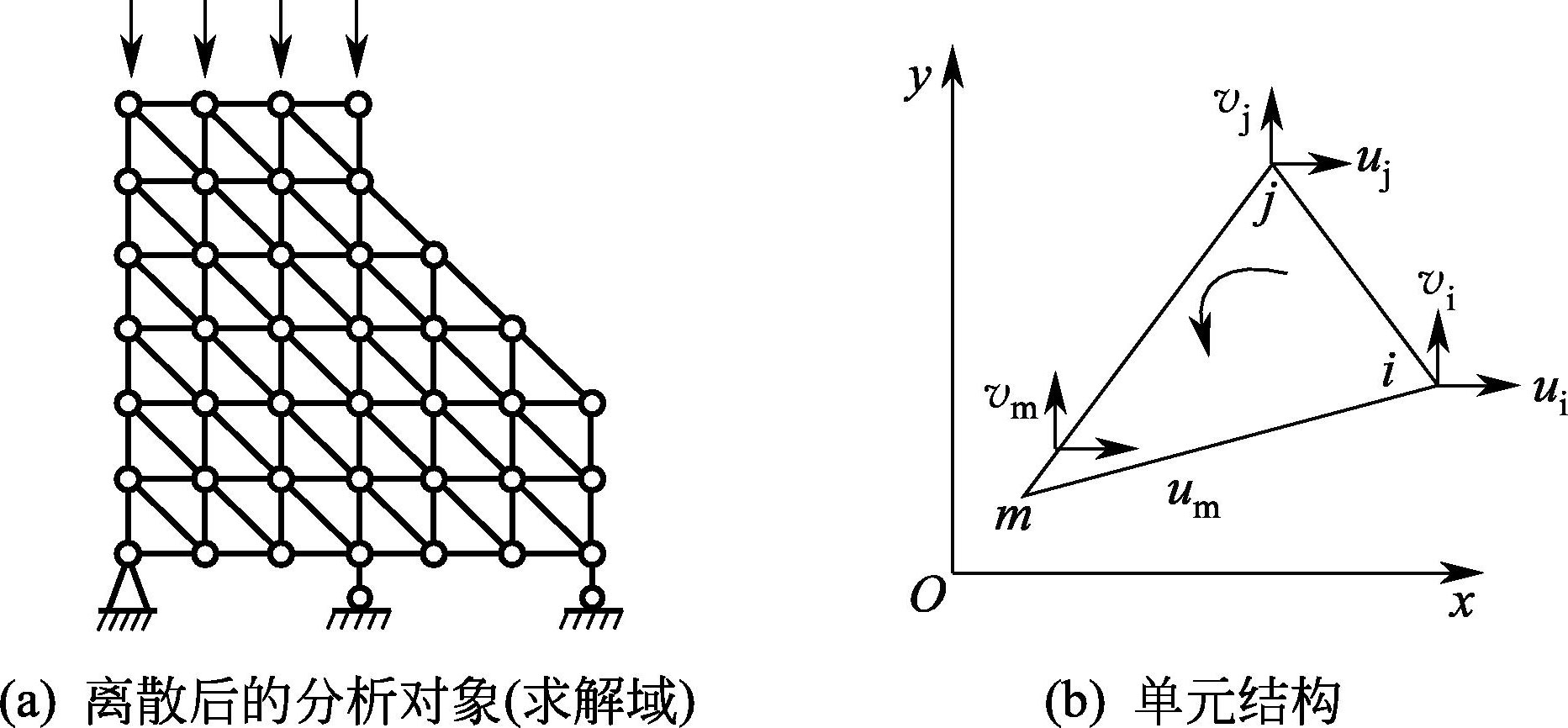 图3-4中,单元节点 i 、 j 、 m 按逆时针排布。