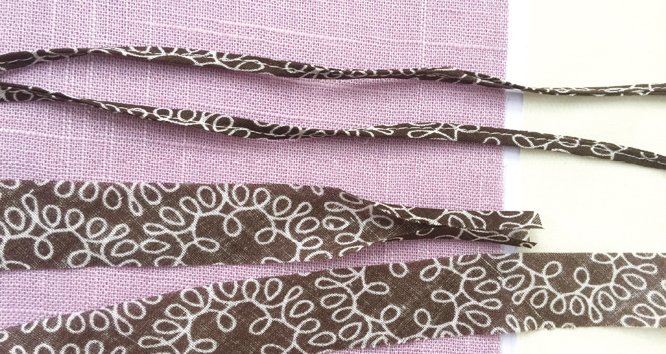 (2)将印花布条面料向内折边再对折缝合。如图2-14所示。