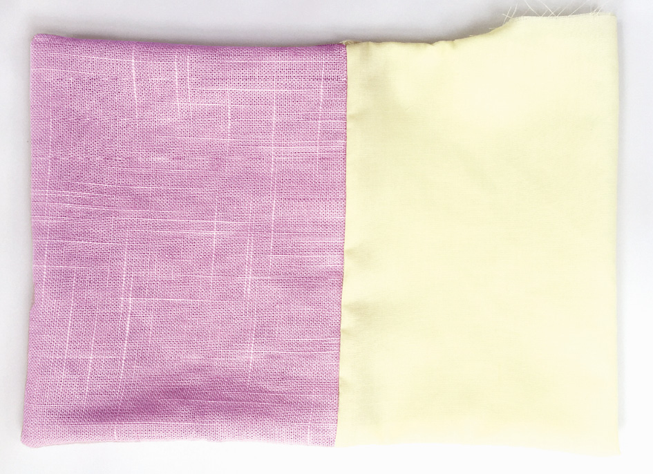 (6)接着将面料的面布折进里布,并对齐底部。如图2-19所示。