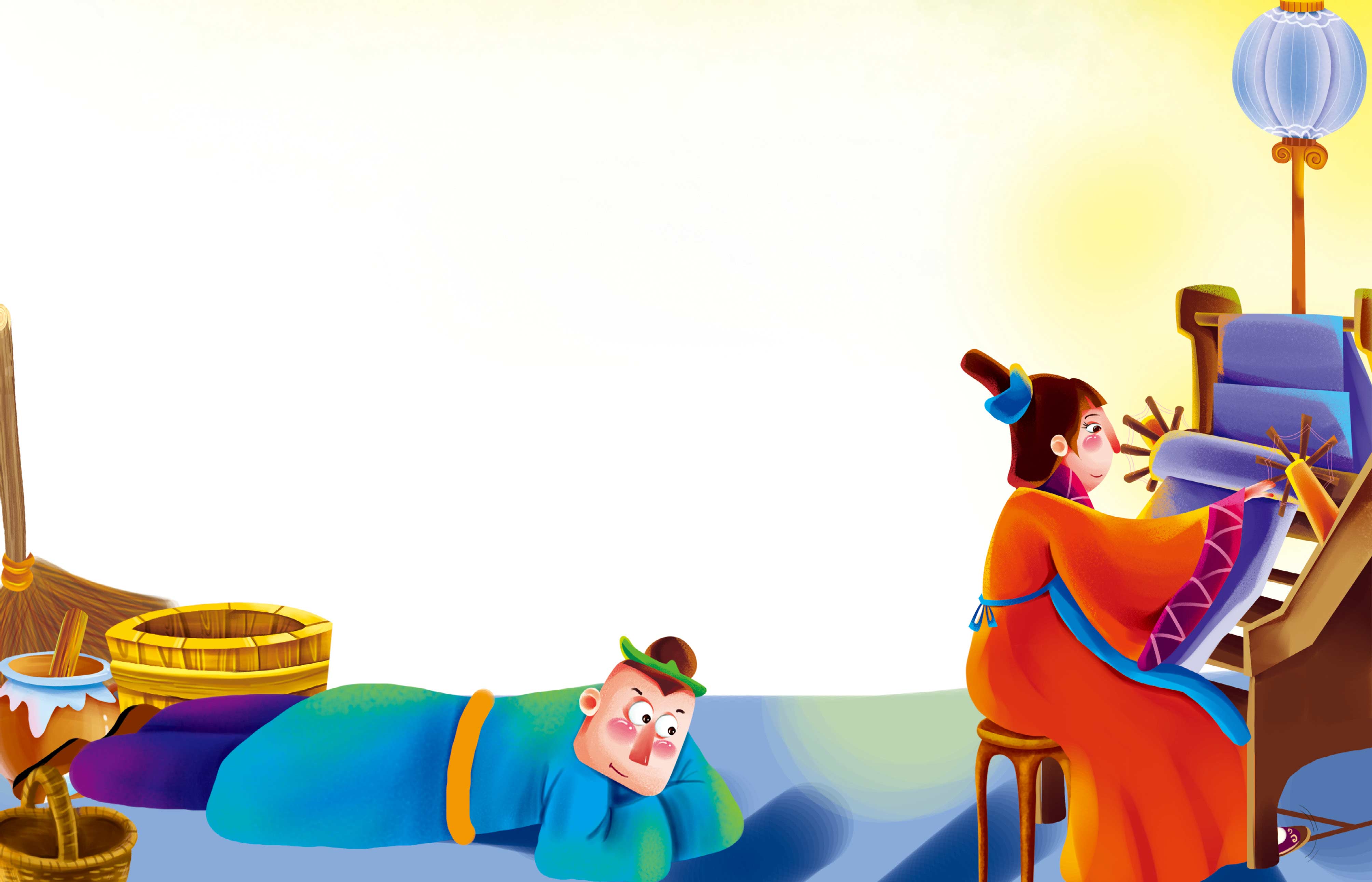 纪昌回到家里,仰面躺在妻子的织布机下面,两眼一眨不眨地盯着妻子织布时不停地踩动着的脚踏板。