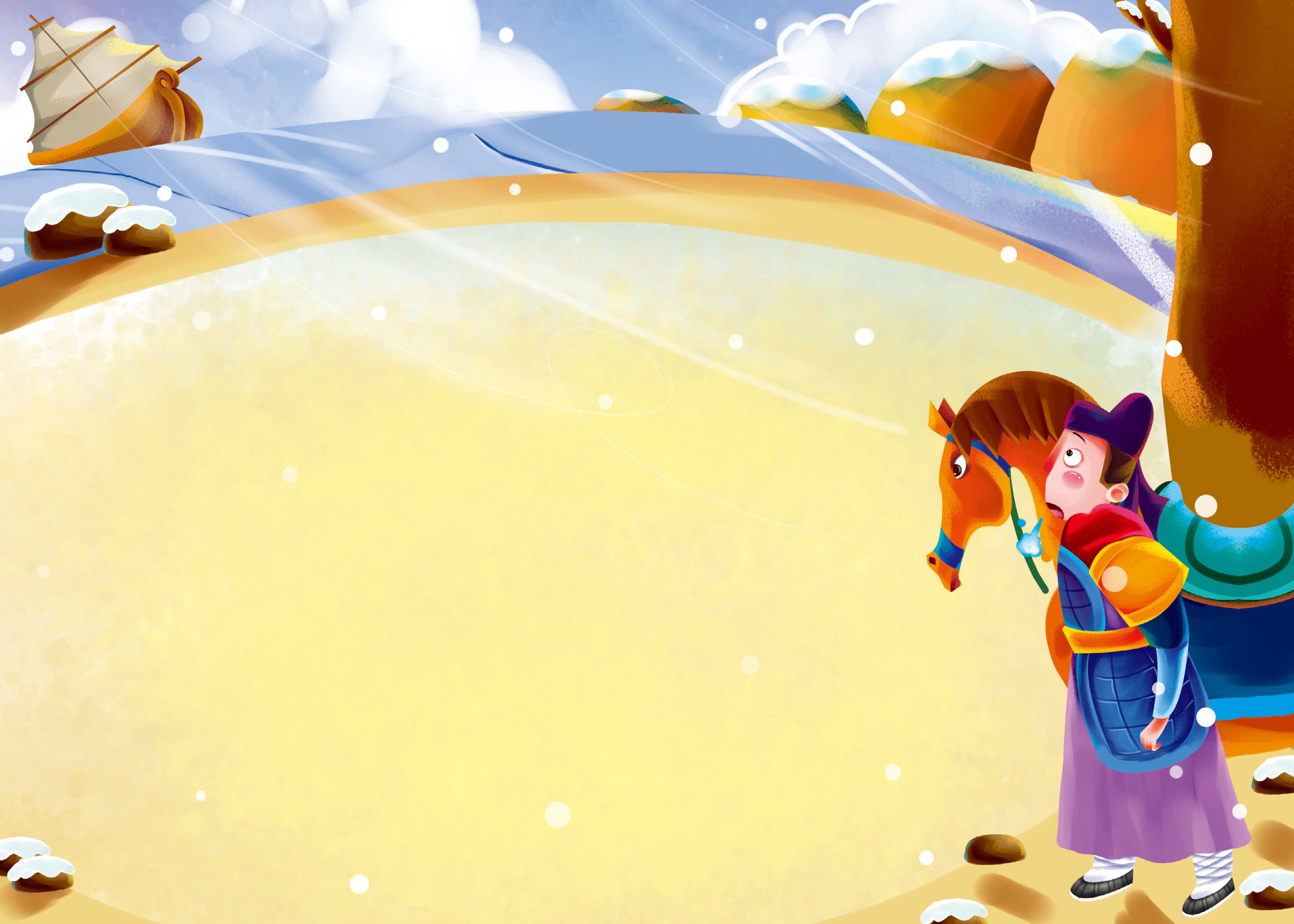 寒风呼啸,雪花飞扬,士兵冻得缩成一团,紧紧地抱住马儿,以此来取暖,一会儿过后,他的身体总算逐渐回暖。