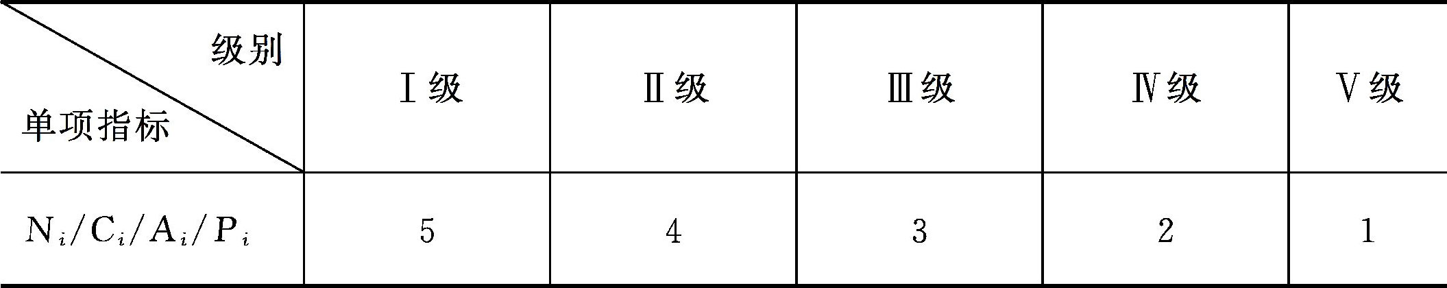 指标权重是指一项指标在整体评价指标体系中的相对重要程度。运用DEMATEL方法得到的各指标因子的中心度,见表5-4,即评价指标的权重值的一种间接表达,可根据各指标间的相互比例关系转化为各指标的权重值,用