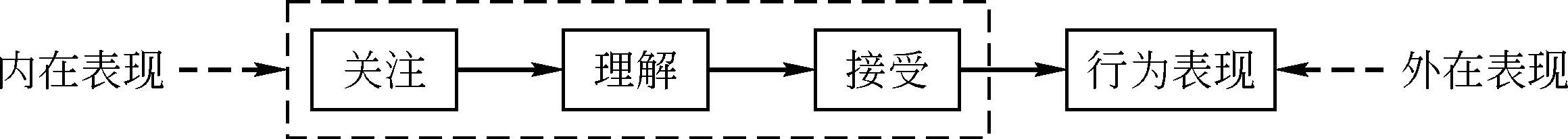 通过分析,安全标语的效力发挥,可大致分为受众者关注、理解、接受、行为表现四个先后过程,见图5-7。受众关注和理解安全标语是前提,接受安全标语是保障和驱动力,这三者是安全标语效力发挥的条件。而行为表现仅是安全标语效力发挥的外显行为,是前三者共同作用的结果。因此,从安全标语本身出发,对其效力的评价可从受众对安全标语的关注、理解和接受三个层次出发,但是安全标语的专业性较强,其专业性也对其效力的发挥影响显著,因此对其效力的评价,还需考虑专业性的问题。总的来说,可从安全标语的关注度、理解度、接受度和专业度四个角度来对其效力进行评价。