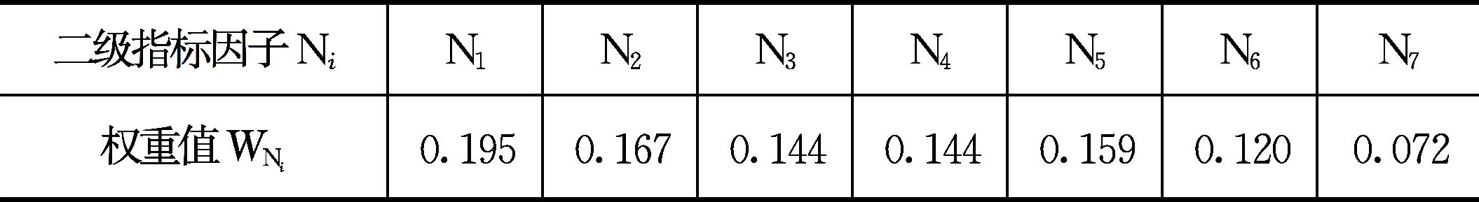 由表5-6、表5-7、表5-8和表5-9,经过比例转换计算,也可得出关注度(N)、理解度(C)、接受度(A)、专业度(P)各一级指标组的权重,见表5-10。