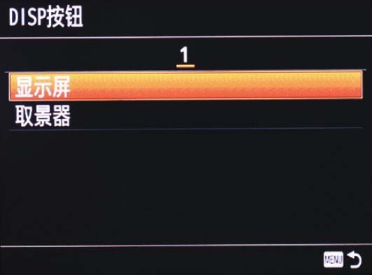 1 在 自定义设置菜单 2中选择DISP 按钮 选项
