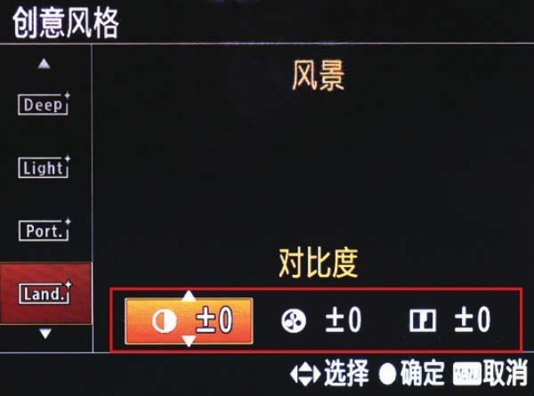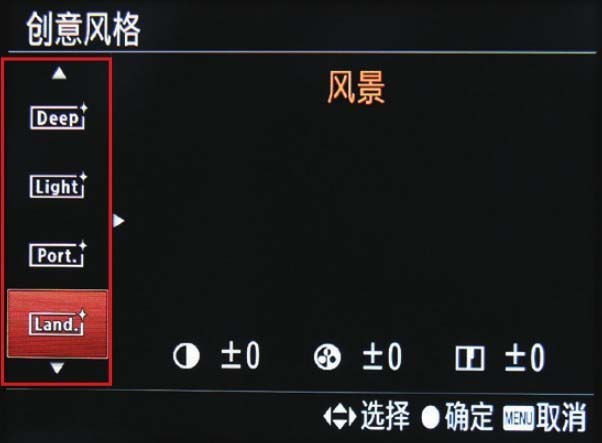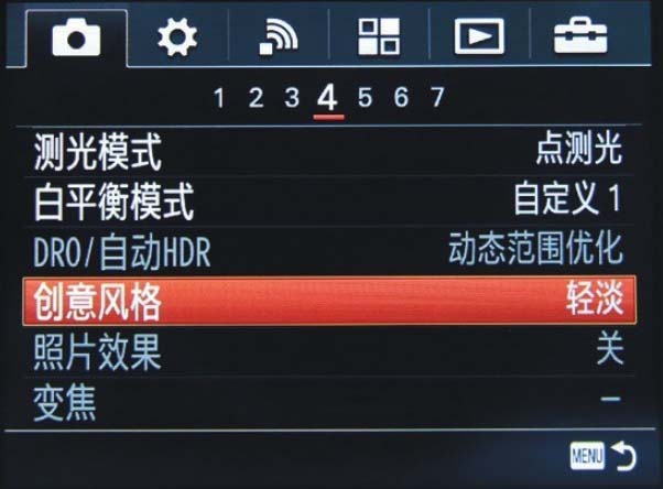 下面以设置“拍摄设置”菜单中的“创意风格”选项为例,介绍设置菜单的详细操作方法。
