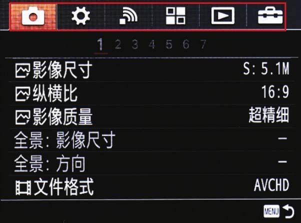 SONYα7菜单组成