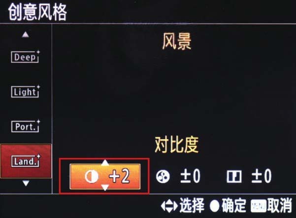 下面以设置“拍摄设置”菜单中的“创意风格”选项为例,介绍设置菜单的详细操作方法。