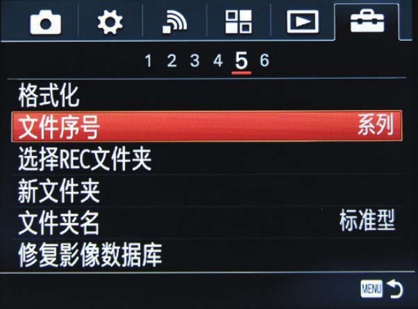 使用SNOY α7拍摄照片时,照片的序号是按相机默认的规则顺序排列的,但这种序号排列规则,可以通过“文件序号”菜单进行重新定义。
