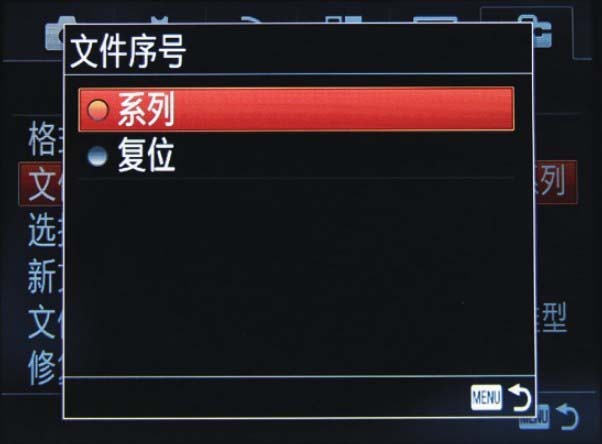 利用“复位”选项可以达到快速分类的目的,例如在拍摄不同地点、不同主题时,即可通过更换存储卡或文件夹的方式,使照片的序号重新排序。