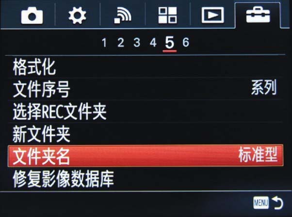 新创建的文件夹名称会以“文件夹名”选项中设置的格式来命名,名称编号为最后文件夹名称编号的下一个编号。例如在“文件夹名”选项中选择“标准型”时,最后文件夹名称编号为100MSDCF,那么新创建的文件夹名称则为101MSDCF。