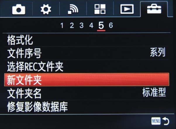 2 按下控制拨轮上的中央按钮确定创建新文件夹