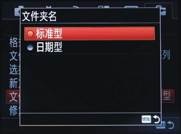 如果在“文件夹名”选项中选择“日期型”时,最后文件夹名称编号为10640326,那么新创建的文件夹名称则为10740326。当新文件夹创建成功后,接下来拍摄的照片将会被记录在新创建的文件夹中。