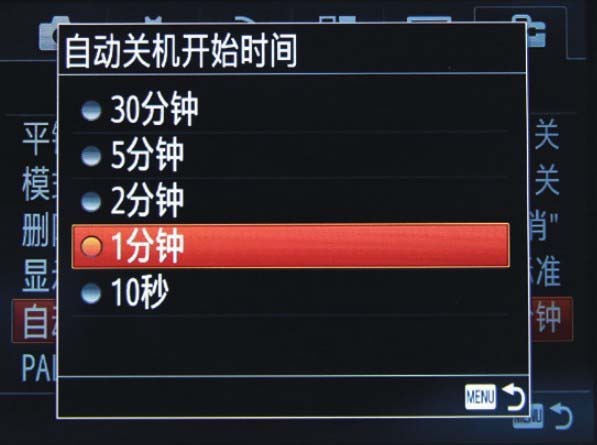 在实际拍摄中,可以将“自动关机开始时间”设置为1分钟或2分钟,这样既可以保证抓拍的即时性,又可以最大限度地节电。