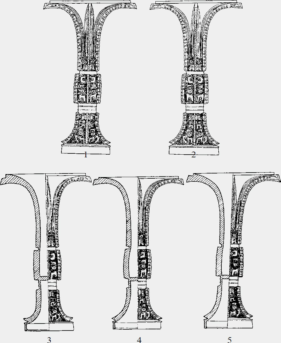这些青铜器以陶范制作,陶范垂直分范的方式经常为一些纹饰提供了布局的框架,或对称的基准。水平式的分割则是规划器物表面的另一个方面。