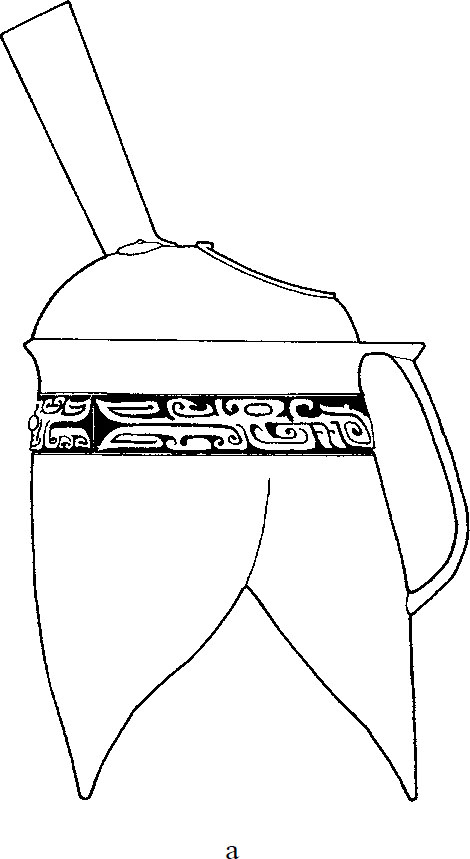 妇好墓中至少包括两种不寻常的器物。其中最突出的是一对带有大袋足的盉【图5-10a】。光是袋足便可将这对盉与见于郑州和盘龙城的那些早期的盉及鬲联系起来【图5-10b】。