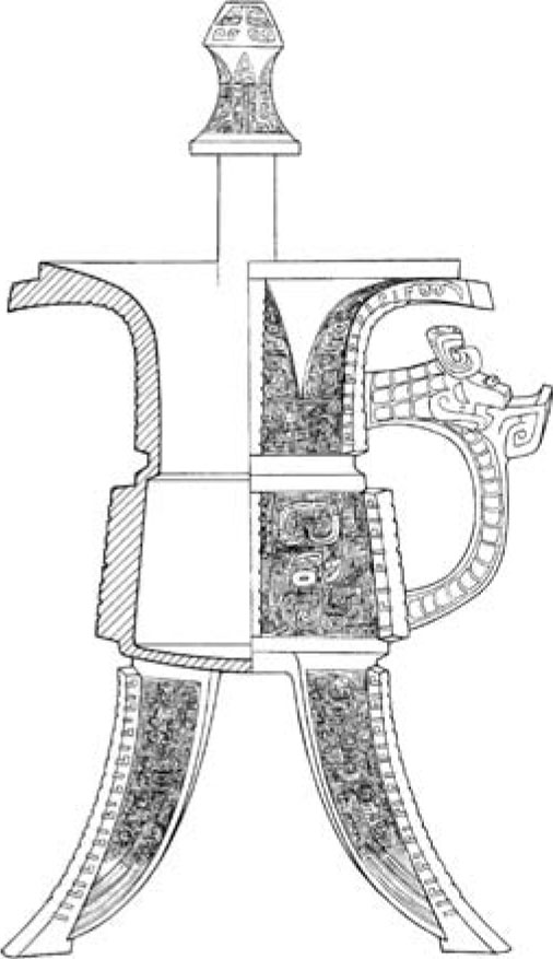 这些青铜器以引人注目的形式出现于祭坛和仪式的主要环节中。我们下面将会见到,一个晚商或周的贵族所拥有的容器大约是20到40件。