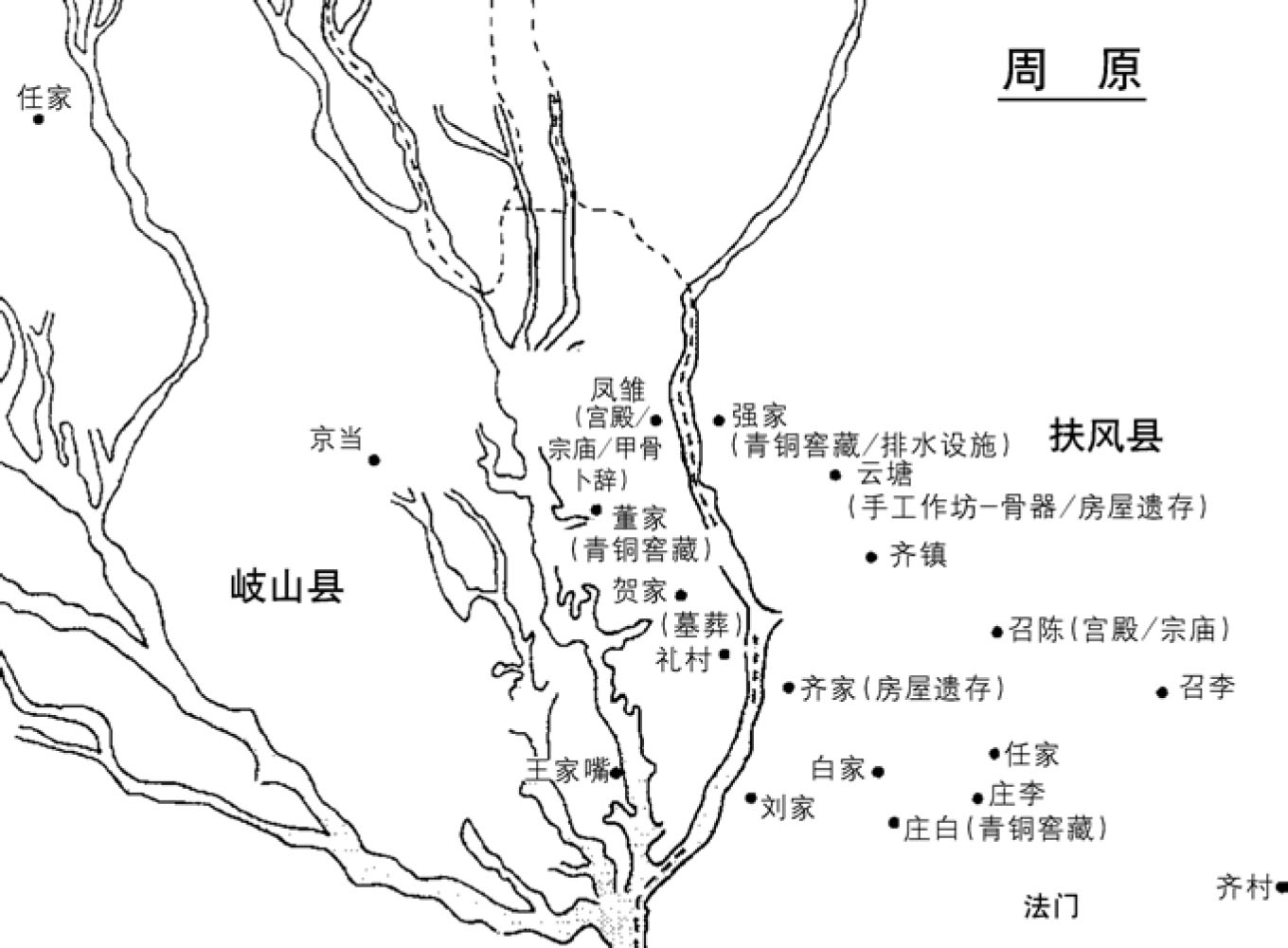 近年来对周代研究来说最重要的发掘都集中在这个包括岐山和扶风在内的广大区域(参见图2-6)。在此发现了宫殿建筑遗存、作坊遗迹、城墙以及墓葬。