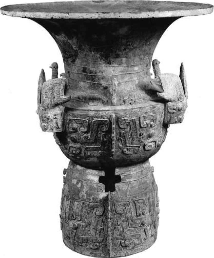 一旦揭示出这些联系,便能解释周代青铜器与之前的商器之间存在的某些主要差异。在克商之前的时期,陕西出土的青铜器多是由生活在商中心区影响范围之外的族群对商青铜器的拙劣仿制。当周人取得政权后,他们采用了各式各样的装饰,特别是那些之前应用于商势力范围之外的湖南和四川地区青铜器上的奇特样式。在周人统治的后期,当他们试图大规模地改变礼器组合的时候,又再一次转向西部地区学习。