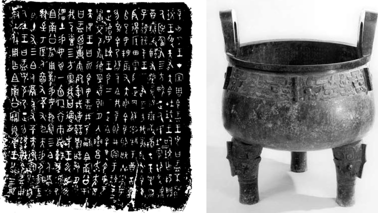 当然在某些重要的方面,特别是在语言和文字的使用上,周人属于这一传统。他们使用商人的文字系统,他们也说相同的语言——汉语。不仅如此,他们还采用相似的宗教仪式,包括占卜以及更重要的祭祀祖先的活动。然而,尽管有共同的语言和礼仪,大量的物质资料,尤其是他们的青铜器,仍然表明周人是外来者。更为特别的是,周人与商影响范围之外的陕西西部有着密切联系,而这种联系直到公元前771年周人统治中国中心区域之前都一直保持着。