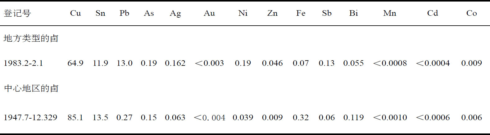 表1 两件中国青铜卣的原子吸收光谱分析(大英博物馆)