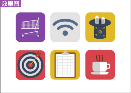 各类UI界面设计中,简约的扁平化设计风格越来越受到人们的喜爱。在本实例中,将使用不同工具绘制一组扁平化图标。在设计过程中,对具象化的图形进行了简化处理,舍弃了渐变、阴影、高光等拟物化的表现方式,对简单的图形应用不同的颜色加以填充,并进行组合,从而打造出扁平化的图标效果。