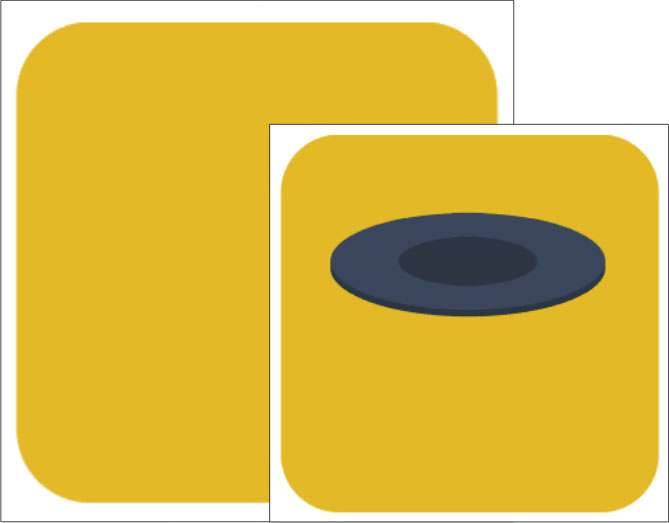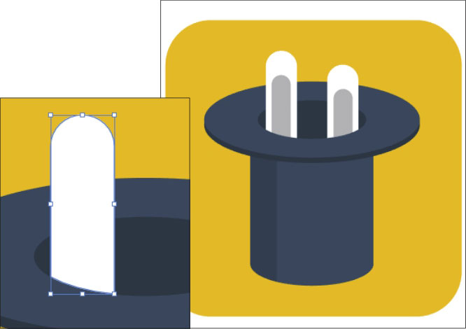 复制一个圆角矩形,将圆角矩形填充颜色更改为黄色。选择“椭圆工具”,在黄色圆角矩形中绘制几个叠加的椭圆形,分别为其填充不同的颜色,组成帽檐。