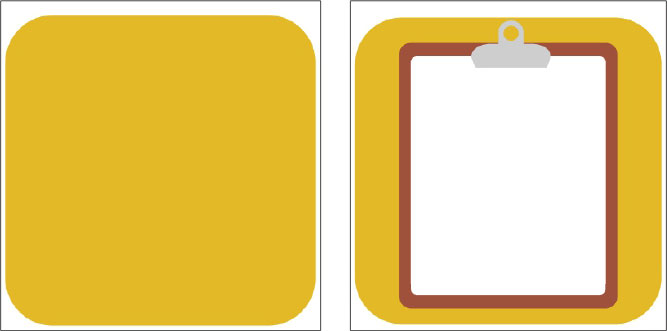 复制前面绘制好的黄色圆角矩形,将其移到合适的位置,结合“钢笔工具”和“圆角矩形工具”绘制一个文件夹图形。