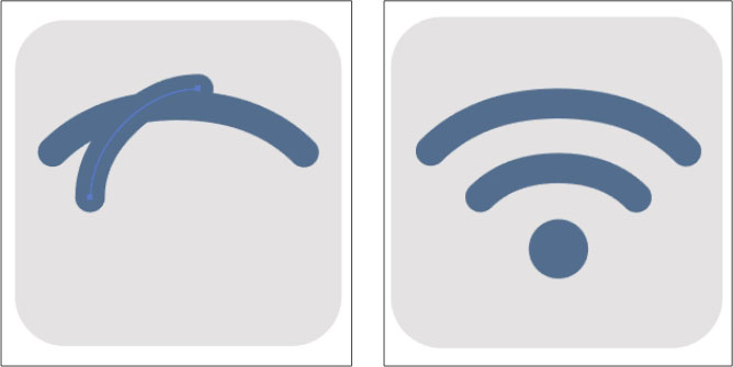 软件会在鼠标单击处创建第二条弧线。应用相同方法,对弧线进行适当旋转。最后在弧线下方绘制一个相同颜色的圆形,完成图标的制作。