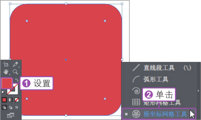 不放,②在展开的工具组中单击选择“极坐标网格工具”。