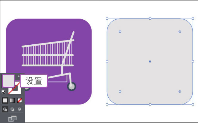 软件会根据输入的参数在画板中绘制一个圆角正方形图形,然后在工具箱中更改填充颜色,得到背景图形。