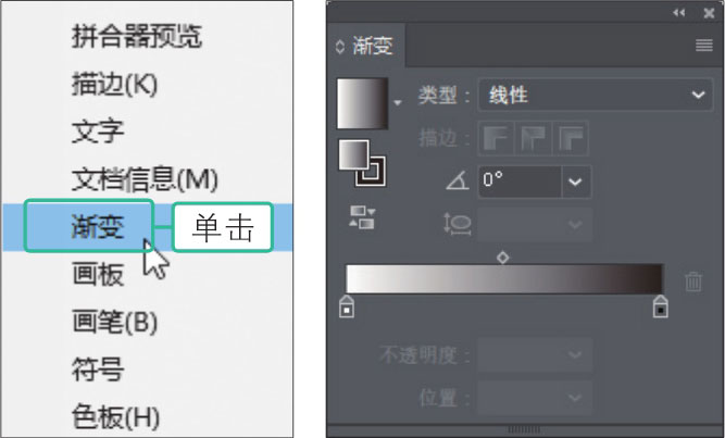 使用“渐变”面板可以对绘制的图形应用渐变填充,也可以应用该面板创建和修改渐变颜色等,具体操作步骤如下。