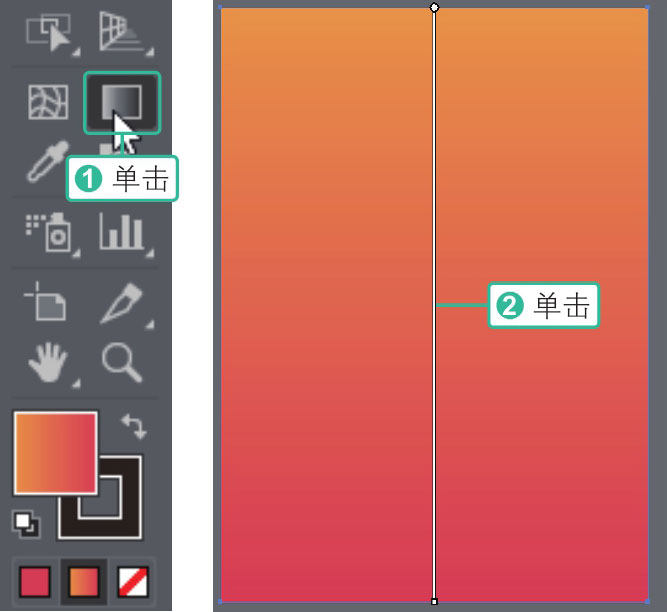 “渐变工具”用于添加或编辑渐变。使用“渐变工具”在未选中的非渐变填充对象中单击时,该对象中将填充上次使用的渐变。选择渐变填充对象并选择“渐变工具”时,该对象中将出现一个渐变滑块,用于调整渐变的角度、位置和范围,具体操作步骤如下。