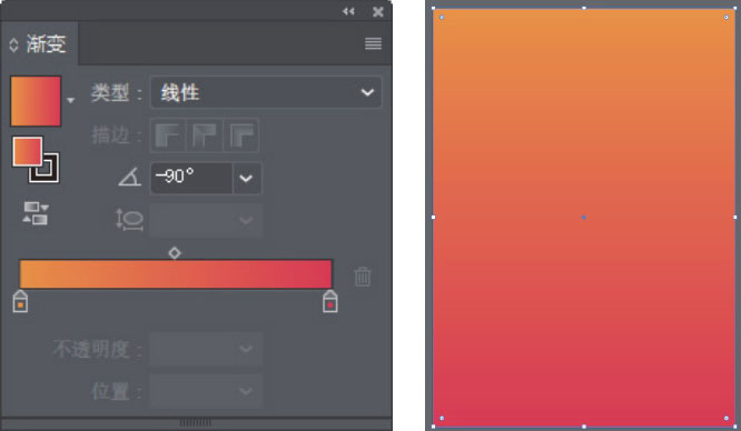 在“渐变”面板中设置“角度”为-90°,更改渐变角度,填充矩形图形。