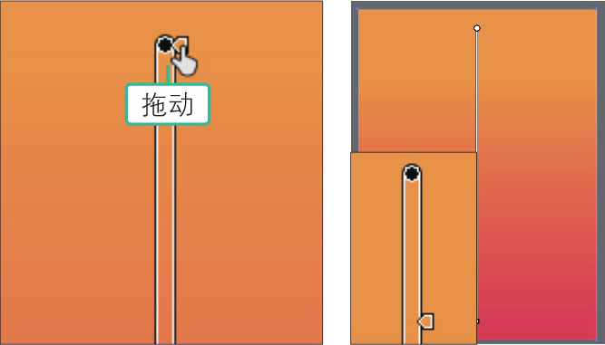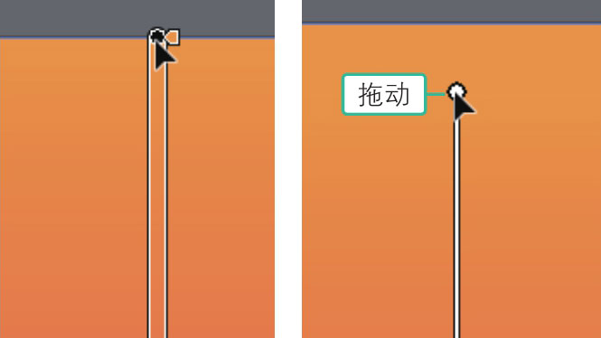 将鼠标指针移到渐变条顶端的圆点上,单击并向下拖动,重新定义渐变的起点位置。