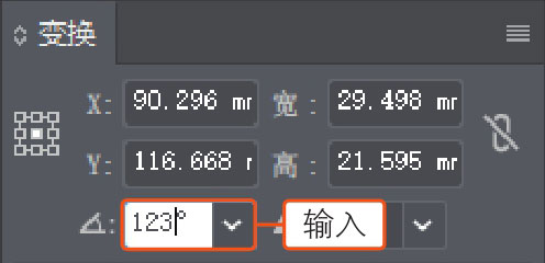 在“角度”文本框中单击,激活文本框,在文本框中输入负值可顺时针旋转对象,输入正值可逆时针旋转对象,这里输入旋转的角度值为123°。