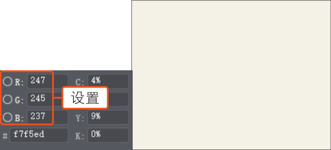 创建新文件,使用“矩形工具”绘制矩形图形,单击工具箱中的“填色”按钮,打开“拾色器”对话框,在对话框中设置填充颜色为R247、G245、B237,填充矩形图形。