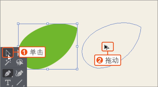 “选择工具”是最为常用的选择对象的工具,它主要通过单击或拖动的方式来选中画板中的对象,具体操作步骤如下。