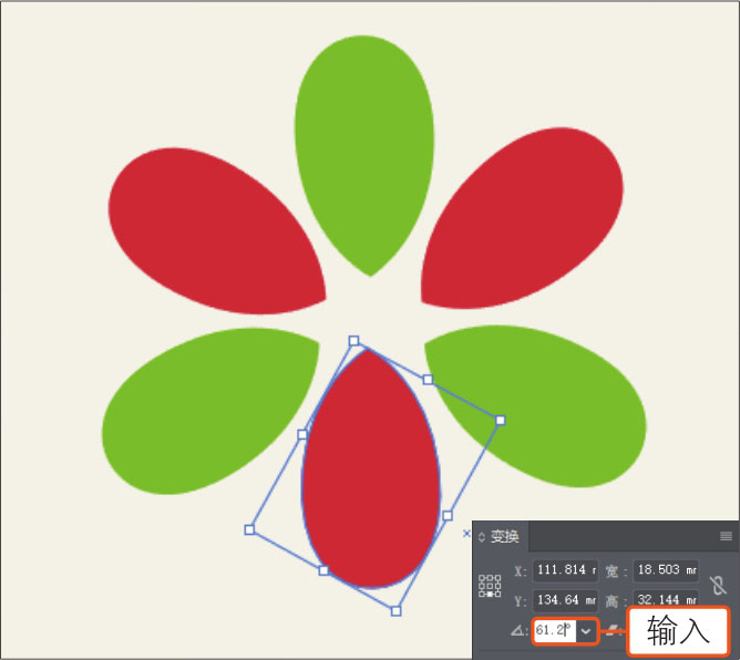 要精确旋转对象,除了使用“旋转”命令,还可以使用“变换”面板。在“变换”面板中的“角度”框中输入数值就能按照此数值旋转选中的对象,具体操作步骤如下。