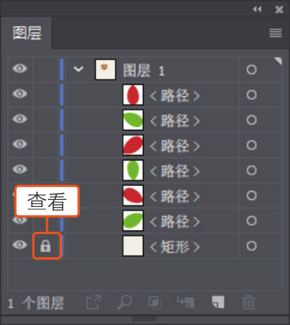 打开“图层”面板,在面板最下方可以看到矩形对象前方显示一个锁形图标
