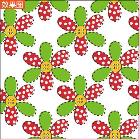 背景图案泛指在视觉图像中与人所看到的前景相对应的、起到衬托前景和协调色调等作用的独立图案。本实例要设计一个由可爱的花朵组成的背景图案,在设计时,先绘制出一个花瓣形状的图形,然后对花瓣图形进行复制和旋转,得到完整的花朵图形,继续对花朵图形进行复制和排布,填满整个画板,完成背景图案的制作。