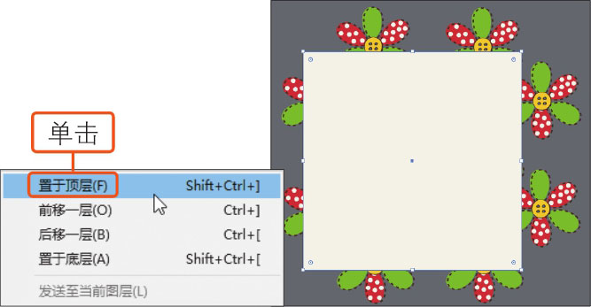 执行“对象>排列>置于顶层”菜单命令,或者按快捷键【Ctrl+Shift+]】,将背景矩形置于所有对象的最上层。