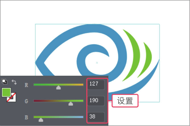 继续在参考线中间绘制图形,在“颜色”面板中设置图形填充颜色为R127、G190、B38。
