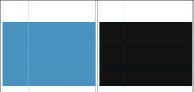 根据建立的参考线,使用“矩形工具”在画面中单击并拖动,绘制出两个同等大小的矩形,并为其填充上不同的颜色。
