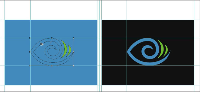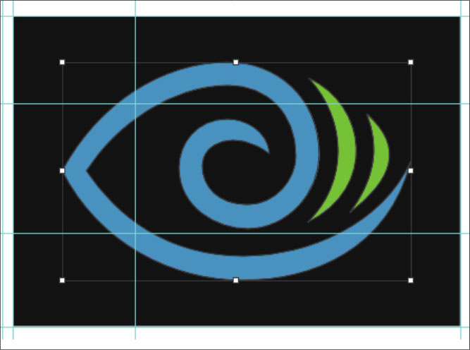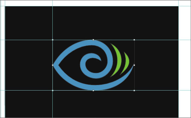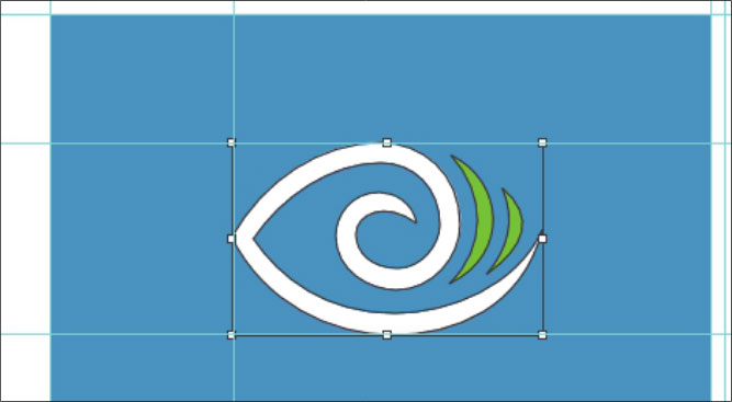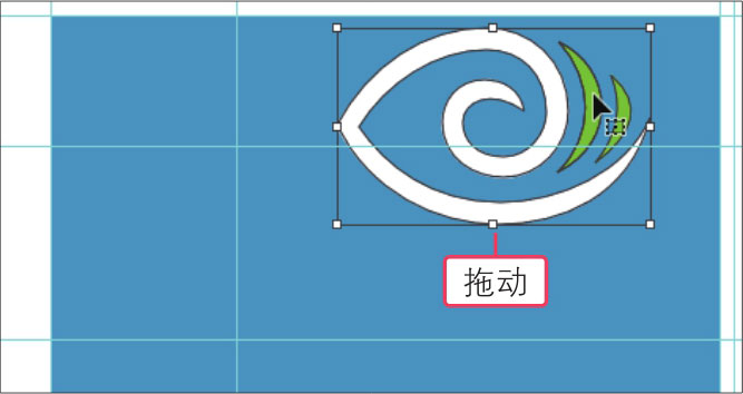 复制并粘贴得到的图形的位置和大小往往不能满足要求。为了得到所需的设计效果,还要将图形移到正确的位置,再对它进行适当的缩放操作。下面将把复制出的徽标图形移到下方的矩形中,并缩放其大小,直至与参考线对齐,具体操作步骤如下。