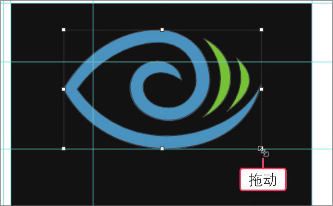 继续单击并拖动鼠标,缩小图形,直到图形完全被参考线所构成的区域包围为止。