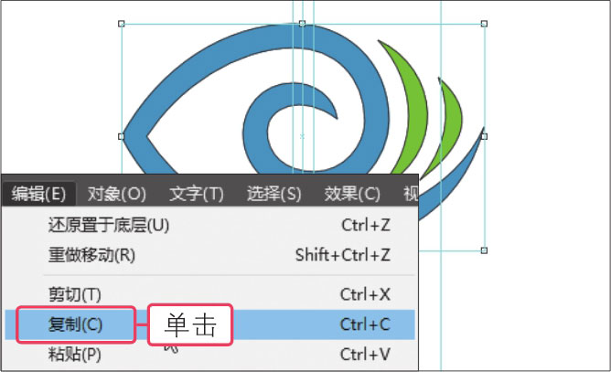 执行“编辑>复制”菜单命令,或按快捷键【Ctrl+C】,复制选中的徽标图形。