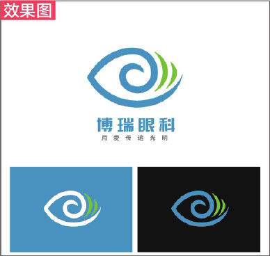 徽标以简洁显著且易识别的物象、图形或文字符号为直观语言来传递信息。企业的徽标是企业形象传递过程中出现频率最高、应用最广泛的关键元素。本实例将为某眼科医院设计一个徽标。根据眼科医院的业务领域,使用经过艺术化设计的眼睛图案作为徽标的主体。在配色上采用蓝色和绿色的搭配,蓝色用于表现医院亲和、关爱的服务宗旨,绿色则用于表现医院给患者带来的健康和光明。整体设计简洁大方、一目了然。